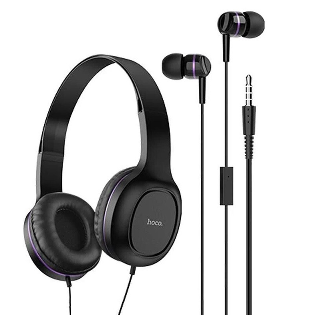 Навушники провідні Hoco W24 набір 2в1 накладні та вакуумні з мікрофоном Black-Purple