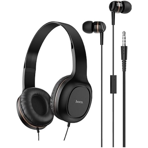 Комплект дротяних навушників накладні та вакуумні з мікрофном HOCO W24 Enlighten Чорно-Золотий