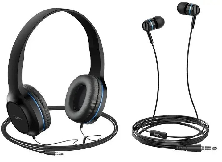 Комплект дротяних навушників накладні та вакуумні з мікрофном HOCO W24 Enlighten Чорно-Синій