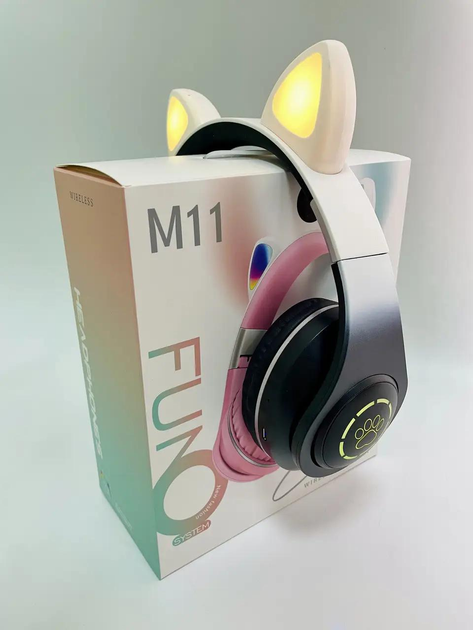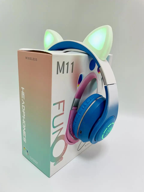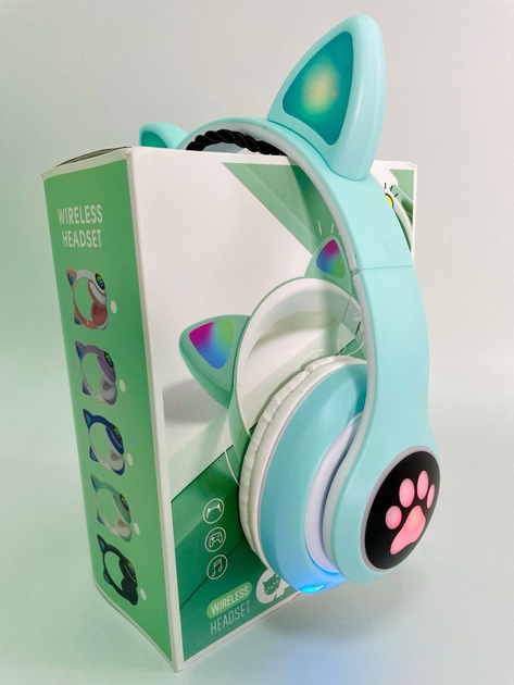 Навушники Котячі вушка підсвічування бездротові Bluetooth радіо мікрофон м'ятні С 53220 (80)