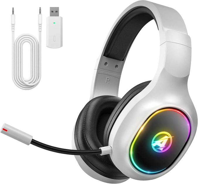 Бездротова ігрова гарнітура 2,4 ГГц для ПК, PS5, PS4 – звук без втрат Білий