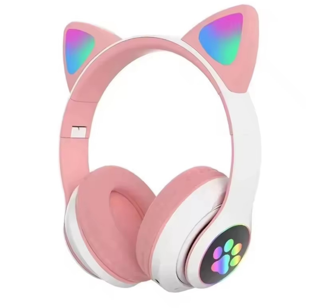 Дитячі навушники з котячими вушками Cat MZ-023 Bluetooth RGB підсвічування FM microSD Біло рожевий