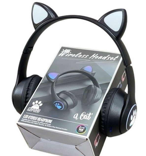 Дитячі навушники з котячими вушками Cat MZ-023 Bluetooth RGB підсвічування FM microSD Чорний