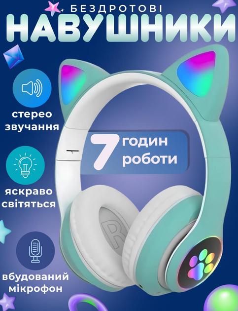 Бездротові навушники з вушками та підсвічуванням MDR Cat VZV-23 M 400mah mint (23MCATLPKC8) TIN66