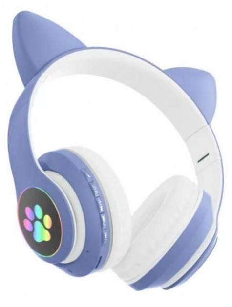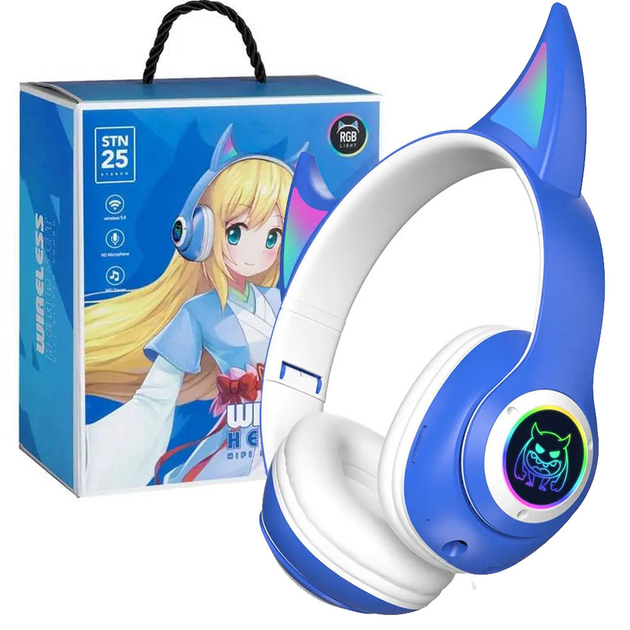 Бездротові навушники з вушками STN25, від USB, Сині / Bluetooth навушники з підсвічуванням / Дитячі навушники