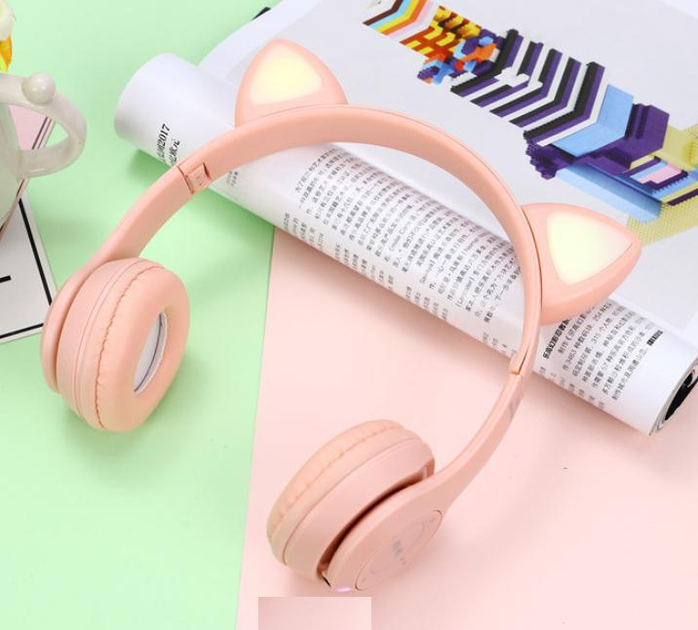 Бездротові навушники з вушками та підсвічуванням MDR Cat Рожевий 32Ом (2424CATNSHNK) TIN66