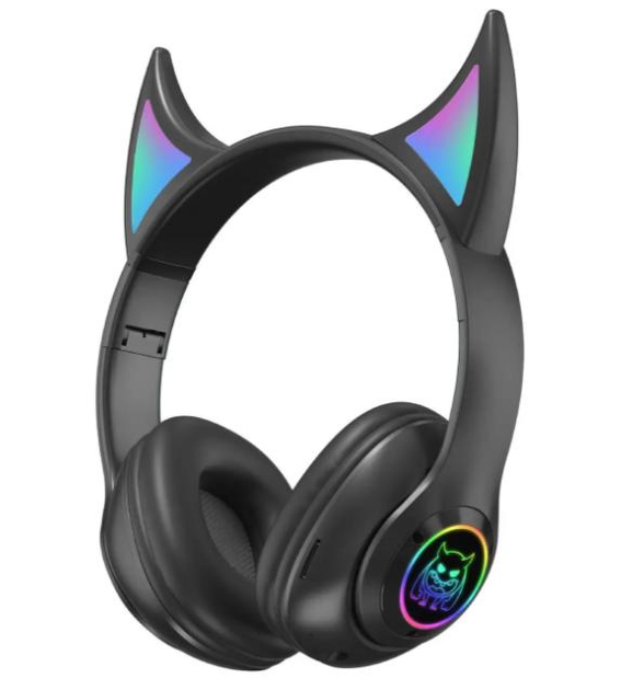 Bluetooth навушники з вушками ріжками бездротові bluetooth чорні дитячі навушники з підсвічуванням