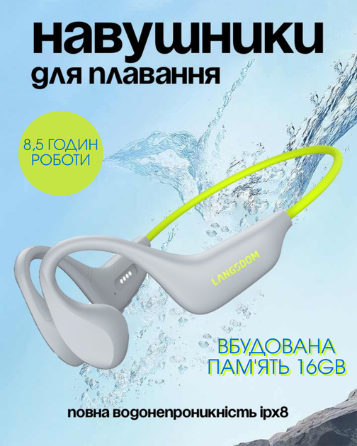 Навушники для плавання басейну бігу спорту IPX8 водонепроникні спортивні з кістковою провідністю з вбудованою пам'яттю 16Gb