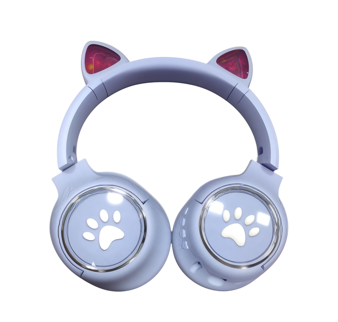 Дитячі навушники для дівчинки з вушками кішки світло, стерео бездротові Bluetooth