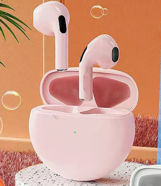 Бездротові навушники блютус з мікрофоном в кейсі Pro 6 TWS розовий ABC
