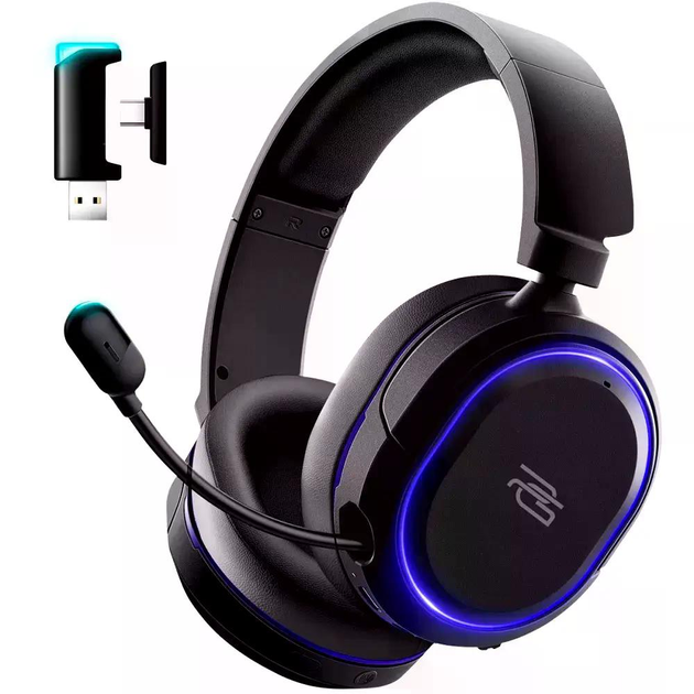 Ігрові навушники бездротові з мікрофоном та LED RGB колір чорний з підсвіткою