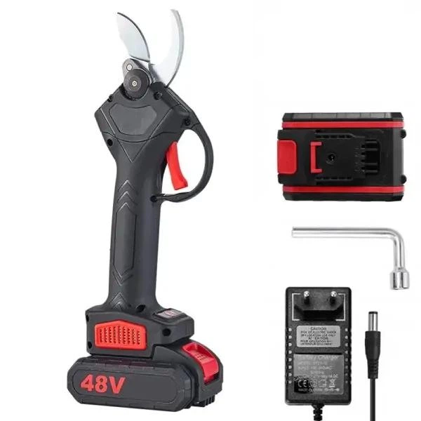 Секатор електричний Чорно-червоний 48V у валізі, Акумуляторні садові ножиці, Електросекатор