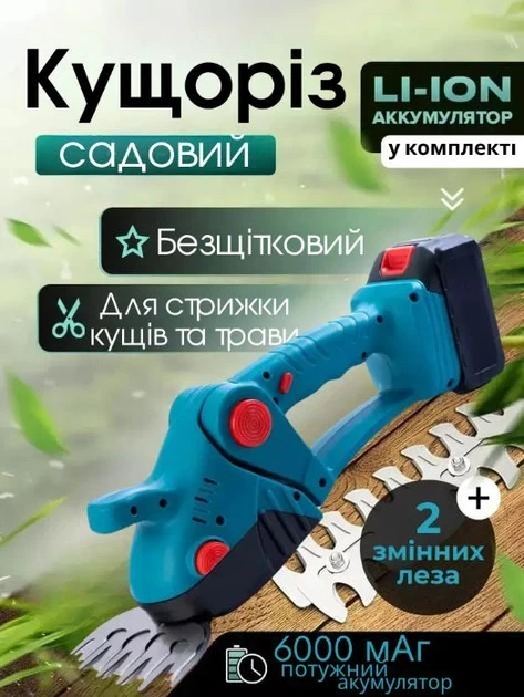 Кущоріз акумуляторний тример садовий інструмент для стрижки трави та кущів 2 в 1 24V 3 Ah потужний з акумулятором зарядкою у