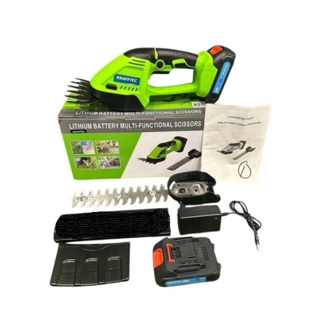 Кущоріз-ножиці акумуляторні Krafftec Germany 2в1 з 2 насадками для кущів і газону зелений