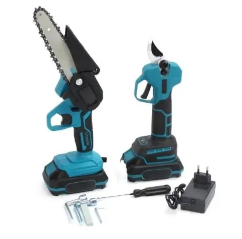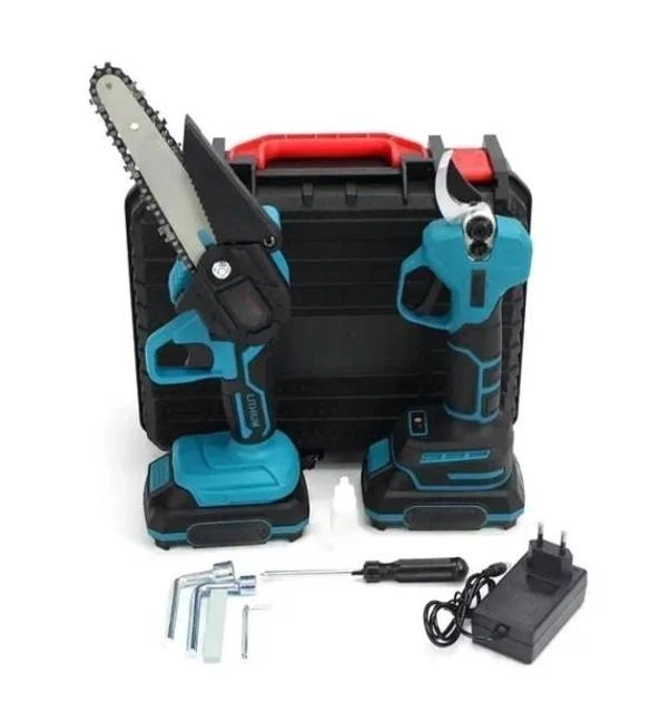 Комплект 2в1 акумуляторна ланцюгова міні пила та секатор садовий акумуляторний у кейсі