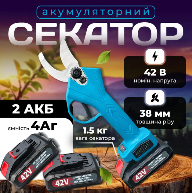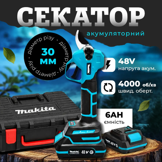 Секатор акумуляторний 48V 6Ah садовий блакитний