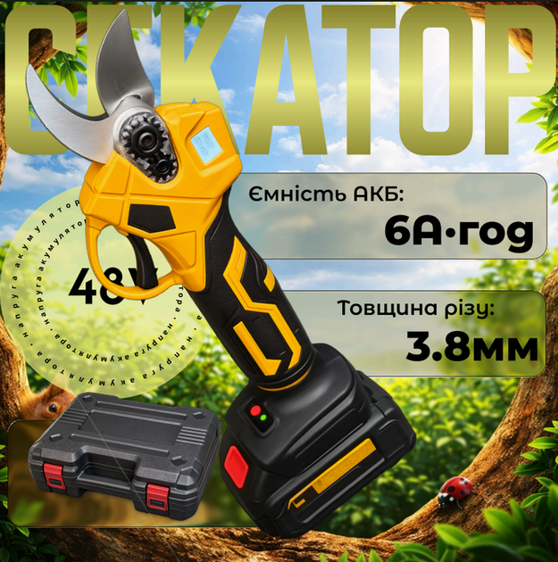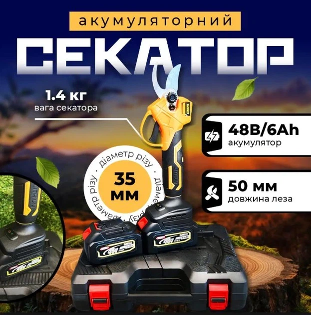 Секатор акумуляторний 48V, 6Ah, 2 АКБ,садовий у кейсі