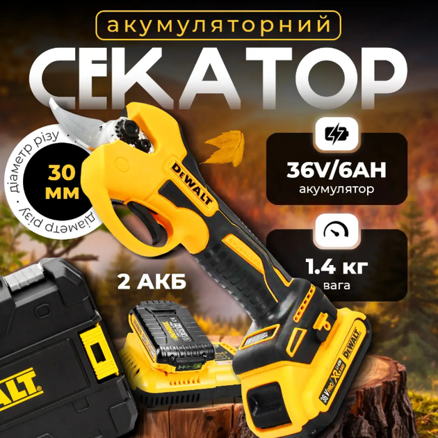 Секатор акумуляторний 36V 6Ah професійний з 2 АКБ у кейсі жовтий