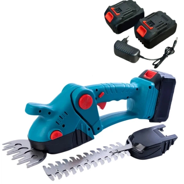 Кущоріз акумуляторний 2в1 із зарядним стійкістю та 2 акумуляторами в комплекті 36V/6. N-012 Чорний із блакитним
