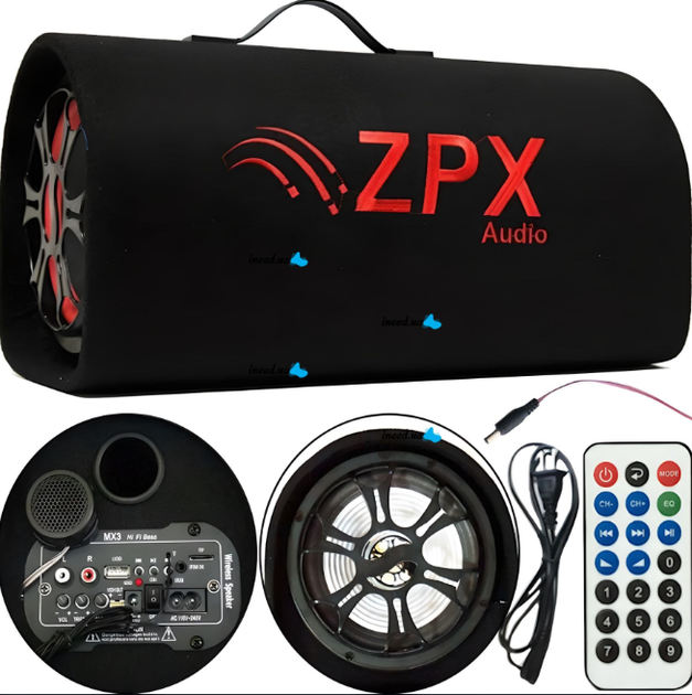 Активний сабвуфер ZPX ZX-10SUB 1000Вт для автомобіля та дому з пультом ДУ, підключенням USB/SD та без спотворень звуку