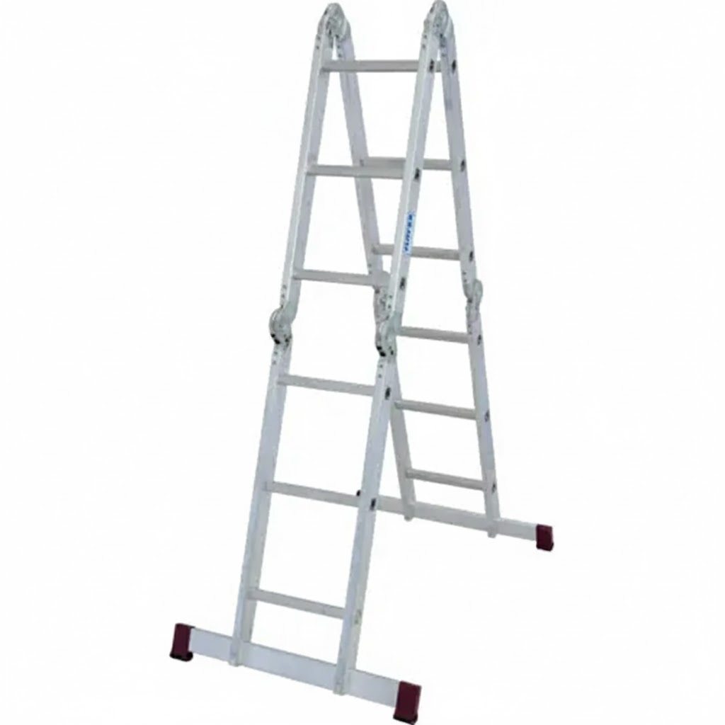 Робоча висота, м: 5; Антиковзаючі вставки на сходинках: Ні; Гарантія: 12 місяців; Кількість секцій, шт: 3; Кількість сходинок: 24 шт; Країна-виробник: Китай; Максимальне навантаження, кг: 150; Матеріал: Алюміній; Нековзні опорні наконечники: Ні; Сфера застосування: Побутове використання; Крок сходинок, см: 27; Ширина сходинок, см: 46; Тип: 3-секційна; Вага, кг: 12