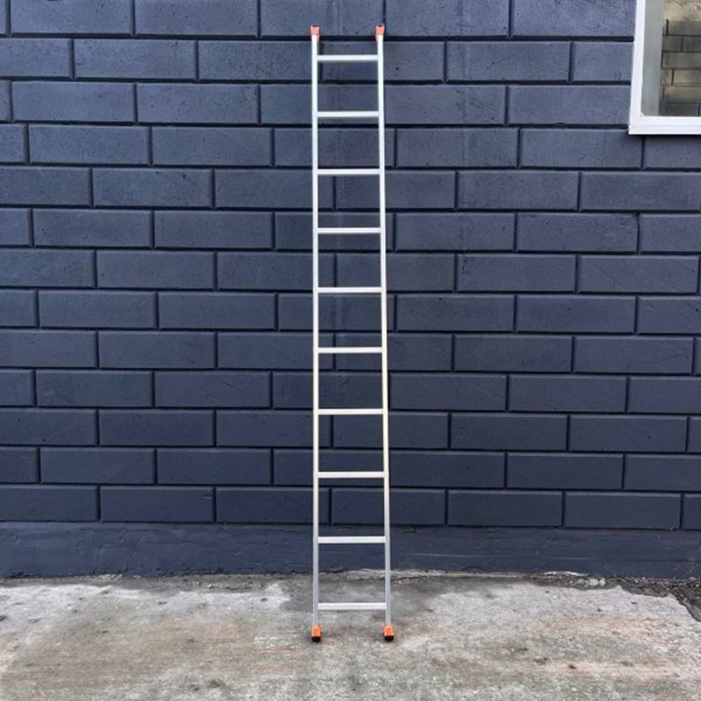Робоча висота, м: 4.1; Антиковзаючі вставки на сходинках: Ні; Бренд: Техпром; Кількість сходинок: 11 шт; Країна-виробник: Україна; Максимальне навантаження, кг: 150; Матеріал: Алюміній; Нековзні опорні наконечники: Ні; Сфера застосування: Побутове використання; Ширина сходинок, см: 47; Тип: Універсальна; Вага, кг: 9