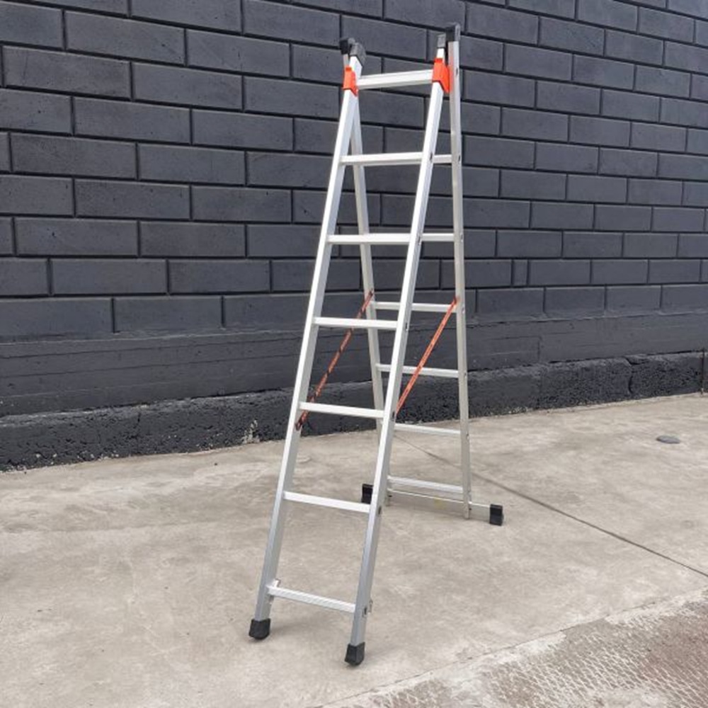 Робоча висота, м: 4; Антиковзаючі вставки на сходинках: Ні; Бренд: Техпром; Кількість секцій, шт: 2; Кількість сходинок: 7 шт; Країна-виробник: Україна; Максимальне навантаження, кг: 150; Матеріал: Алюміній; Нековзні опорні наконечники: Ні; Сфера застосування: Побутове використання; Ширина сходинок, см: 39; Тип: Універсальна; Вага, кг: 6.3