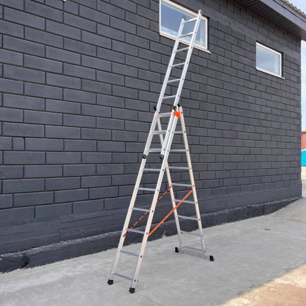 Драбина трисекційна алюмінієва Техпром 3х9 сходинок 5.93 м (10309)