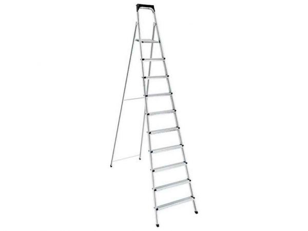 Драбина металева 10 сход. Технолог - її опорна частина виготовлена з круглої труби Сходинки з ребрами жорсткості, Легко складається і розкладається. Пластикові наконечники захищають вашу підлогу від подряпин. В комплекті є металеві розтяжки для більш надійної стійкості Висота до верхньої сходинки: 220 см Згальна висота в розкладному вигляді: 250 см Висота в складеному вигляді: 280 см Вага: 12,9 кг Колір може змінюватись заводомо виробником на будь-який