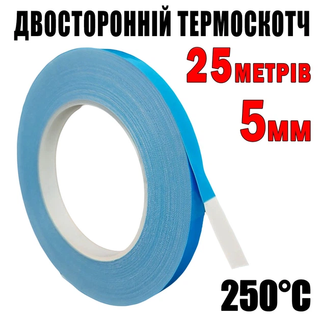 Термоскотч 3KS двосторонній 25м x 5мм теплопровідний скотч термостійкий теплостійкий