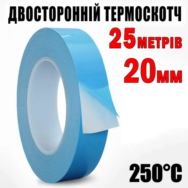 Термоскотч 3KS двосторонній 25м х 20мм теплопровідний скотч термостійкий теплостійкий
