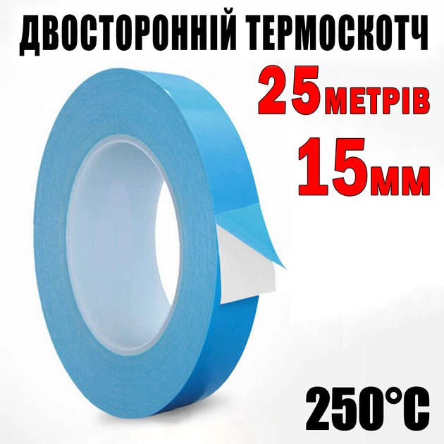 Термоскотч 3KS двосторонній 25м х 15мм теплопровідний скотч термостійкий теплостійкий