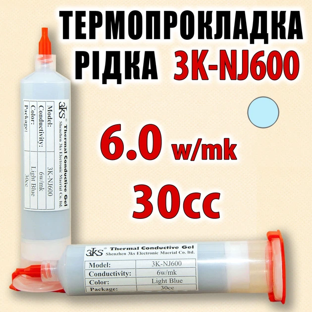 Термопрокладка рідка 3K-NJ600 30cc блакитна 6W/mk термоінтерфейс термогель терможуйка