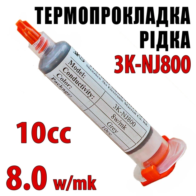 Термопрокладка рідка 3K-NJ800 10cc сіра 8W/mk термоінтерфейс термогель терможуйка