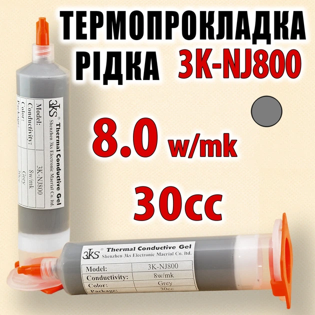 Термопрокладка рідка 3K-NJ800 30cc сіра 8W/mk термоінтерфейс термогель терможуйка