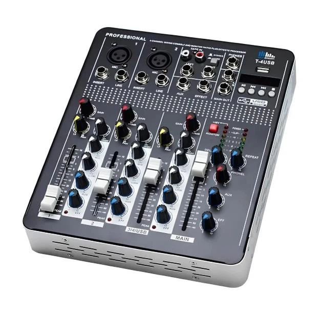 Аудіо мікшер, мікшерний пульт 4 канали, діджейський пульт з bluetooth, BT-4000