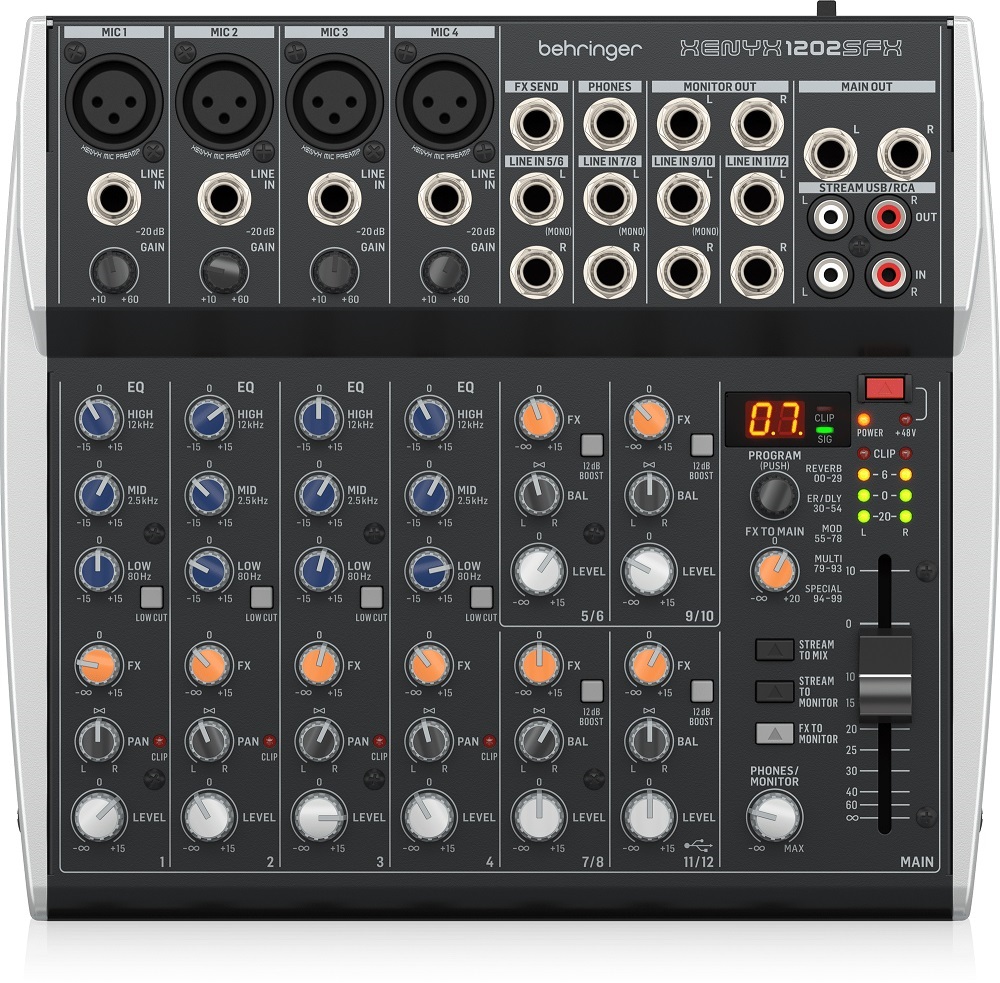 Мікшерна консоль XENYX 1202SFX від компанії Behringer має 12 вхідних каналів для беззаперечного досягнення виняткового звучання, ідеального для стрімінгу, подкастінгу або вживої передачі. Завдяки нагородженим мікрофонним підсилювачам XENYX з фантомним живленням 48 В для підключення навіть висококласних студійних мікрофонів, мікшер надає теплий та надзвичайно музичний звук.