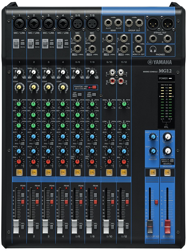 Мікшерний пульт Yamaha MG 12 XU - 12-канальна компактна мікшерна консоль третього покоління серії MG з простим, інтуїтивно зрозумілим інтерфейсом і з USB аудіоінтерфейсом, оснащена набором фірмових SPX-ефектів включаючи: хорус, фленджер, дісторшн, реверберацію, ділей з високою роздільною здатністю і редагованими параметрами. Обеспеченіваєт чудове звучання в найрізноманітніших умовах