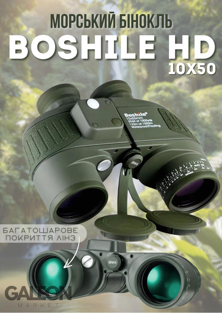Тактический бинокль Boshile HD 10х50, с дальномерной сеткой и компасом