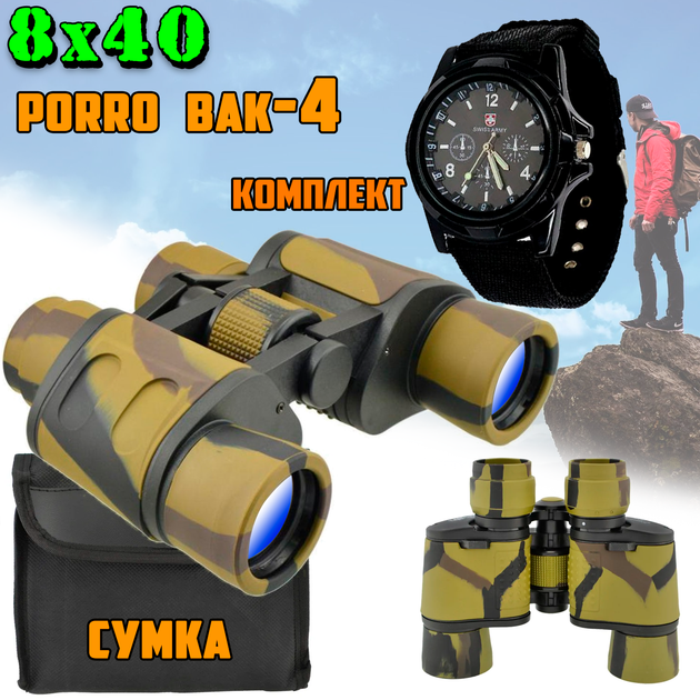 Бінокль 8X40 Baigishi Porro BAK-4 з 8х кратним наближенням 168/1000м, компактний, з чохлом, військовий для ЗСУ Камуфляж + Чо