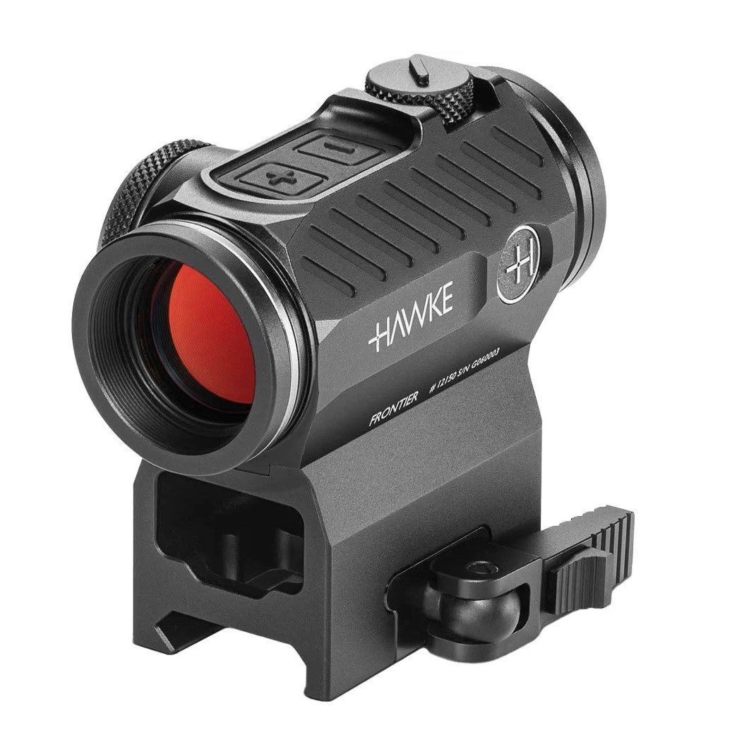Приціл коліматорний Hawke Frontier RD 1x22, 2 MOA, QR high/low Коліматорний приціл Hawke Frontier призначений для встановлення як на мисливські гвинтівки, так і на карабіни на платформі AR. Високоякісна алюмінієва конструкція, втоплені регулятори яскравості, захищені турелі та водонепроникність за стандартом IPX7 забезпечують міцність та надійність при використанні приладу у найскладніших умовах.