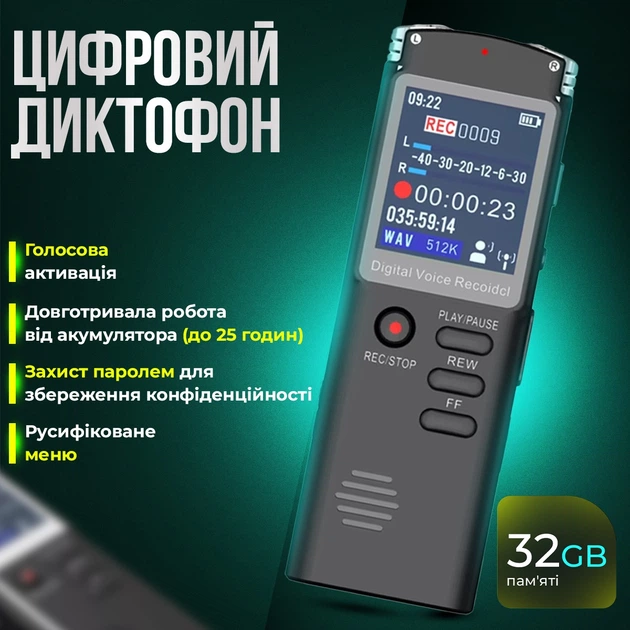 Диктофон цифровий з активацією голосом Lyker V35 Mp3, VOX, 30 годин запису 32 Гб