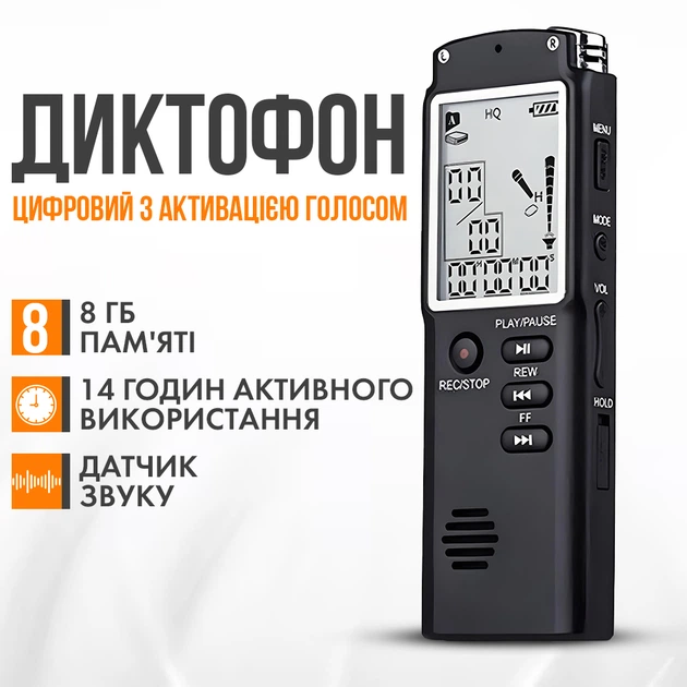 Диктофон цифровий з активацією голосом Volemer T60 Mp3, VOX, 15 годин запису 8 Гб