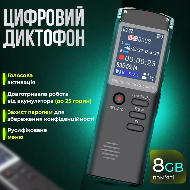 Диктофон цифровий з активацією голосом Lyker V35 Mp3, VOX, 30 годин запису 8 Гб