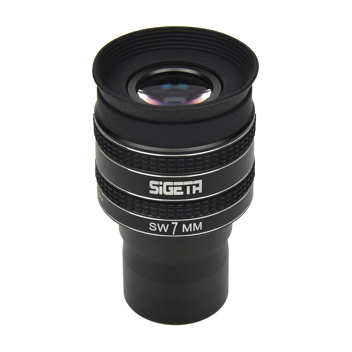 SIGETA 58 SERIES 7 мм — ширококутний окуляр для телескопа з помірним збільшенням та ультрашироким полем зору. Даний аксесуар відмінно підходить для тривалих спостережень за планетами та Місяцем у різних атмосферних умовах, забезпечуючи стабільно якісне зображення навіть при середній турбулентності атмосфери. Особливістю окуляра є комфортний винос зіниці у 16 мм, що дозволяє вести