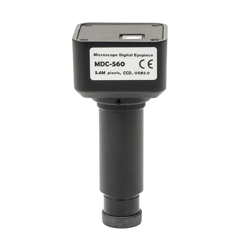 SIGETA MDC-560 CCD 5.6 MP – досить потужна, але доступна за ціною цифрова камера-окуляр для мікроскопів будь-якого типу (біо-, стерео-, металургійних). Розмірність її CCD-сенсора – 5.6 МП, максимальний розмір сформованої картинки складає 2720 x 2048 пікселів. Співвідношення Сигнал/Шум у 75 дБ говорить про здатність камери будувати деталізовані та контрастні мікрозображення. Технічні
