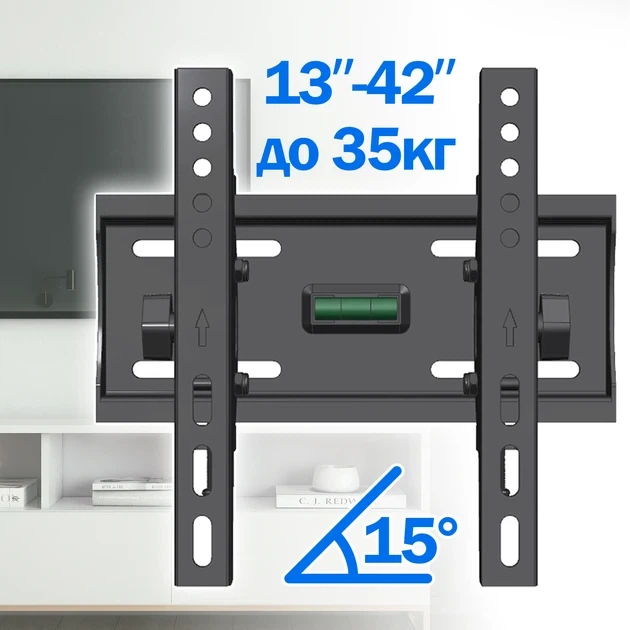 Кронштейн для телевізора PLN08-22T Чорний Навісний настінний кріплення діагоналлю 13" — 42" до 35 кг