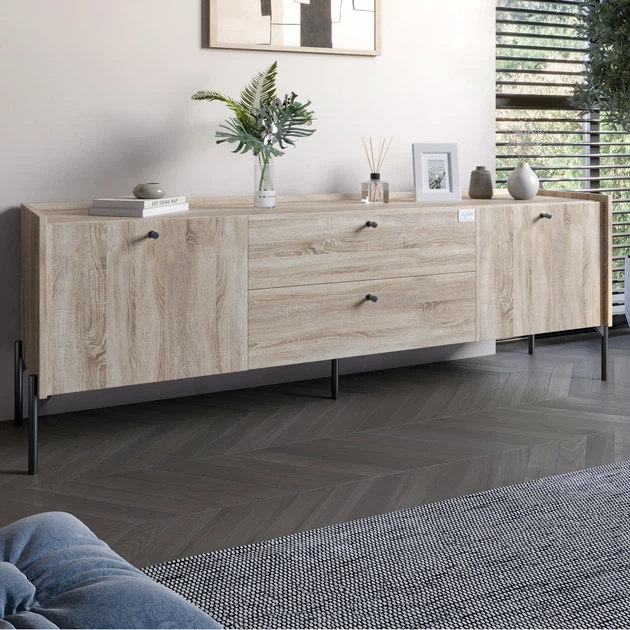 Тумба під телевізор з шухлядами LION Wood з чорними ніжками 180х50х40 см Дуб Сонома (LION-043129)
