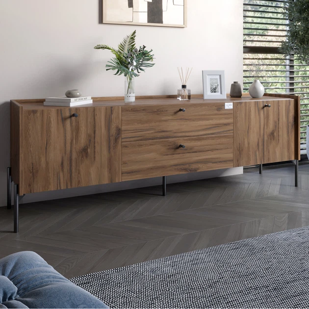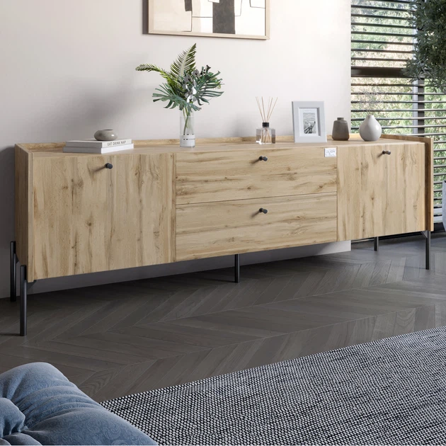 Тумба під телевізор з шухлядами LION Wood з чорними ніжками 180х50х40 см Дуб Артизан (LION-043127)