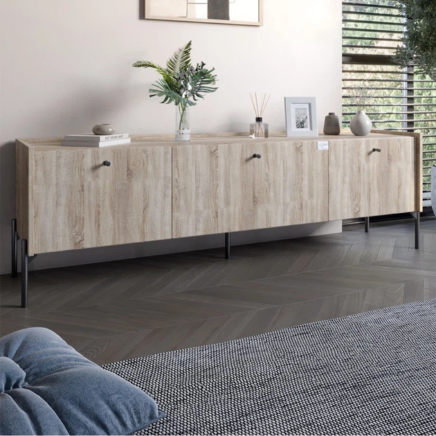 Тумба під телевізор на 3 шухляди LION Wood з чорними ніжками 180x50x40 см Дуб Сонома (LION-043100)